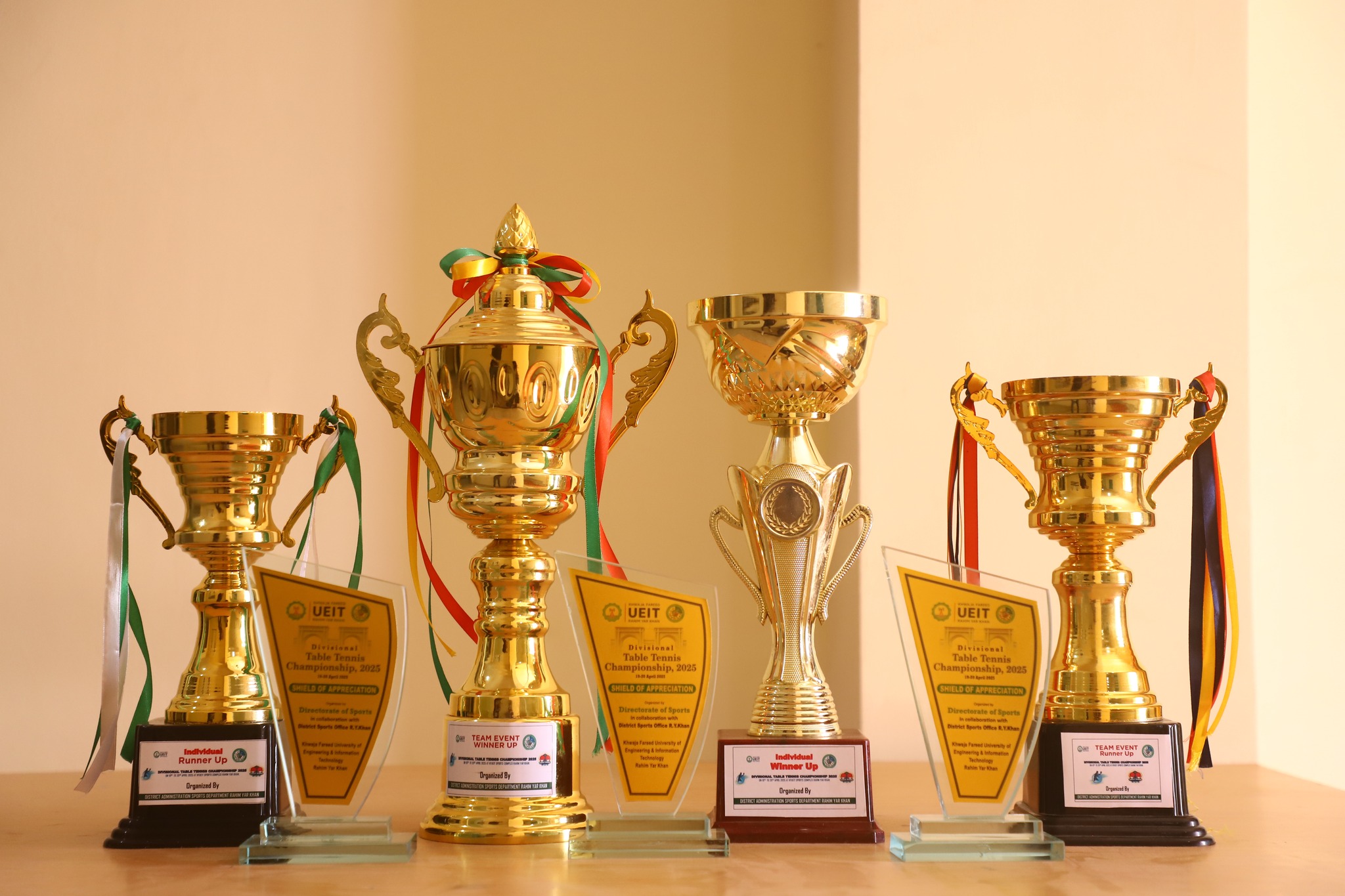 The grand closing ceremony was graced by the WVC KFUEIT as the chief guest, accompanied by the District Sports Officer Rahim Yar Khan and the Secretary of the Punjab Table Tennis Association. Shields, trophies, and cash prizes were awarded to the top performers in recognition of their dedication and achievements.