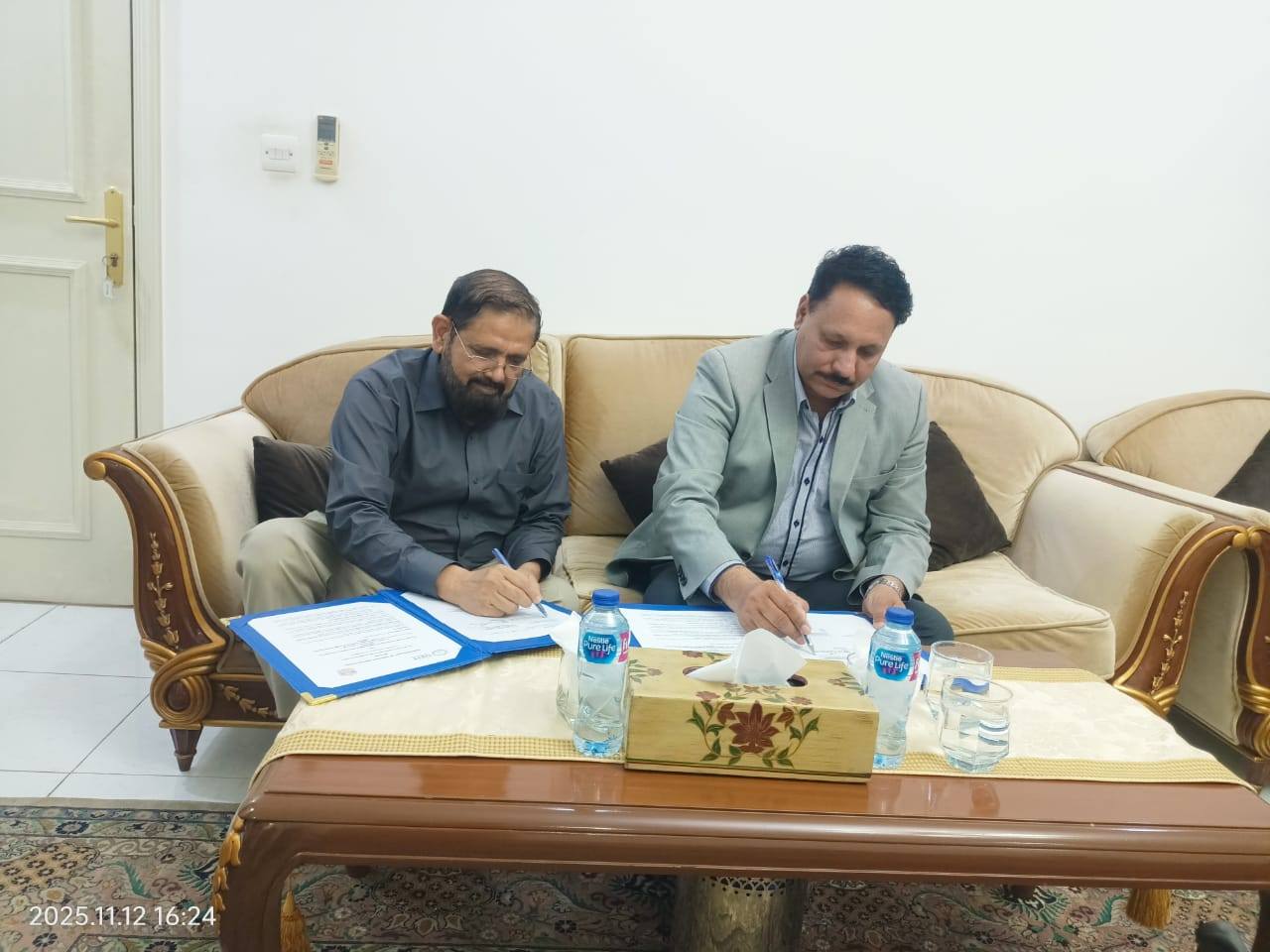 The ceremony was attended by Prof. Ir. Dr. Amir Azam Khan, Vice Chancellor KFUEIT; Prof. Dr. Muhammad Sagir, Dean / Director SPISD; Major (R) Irfan Mustafa, Manager All Regions, UAE Presidency’s Private Department and his team; Mr. Muhammad Abid Ali, Deputy Registrar KFUEIT, Mr. Muhammad Amjad, Superviser SPISD. The MoU was signed by Prof. Dr. Muhammad Sagir and Major (R) Irfan Mustafa.