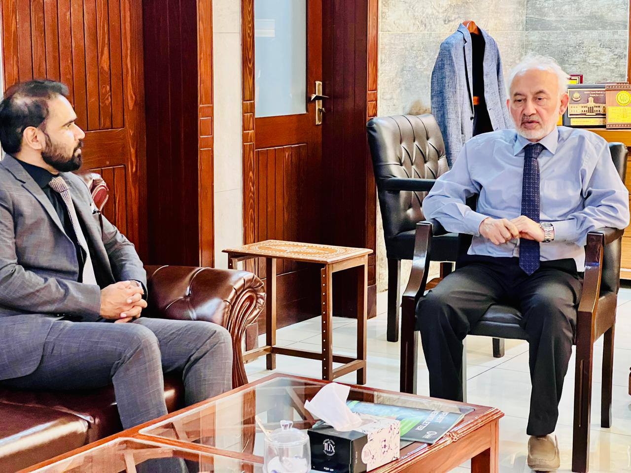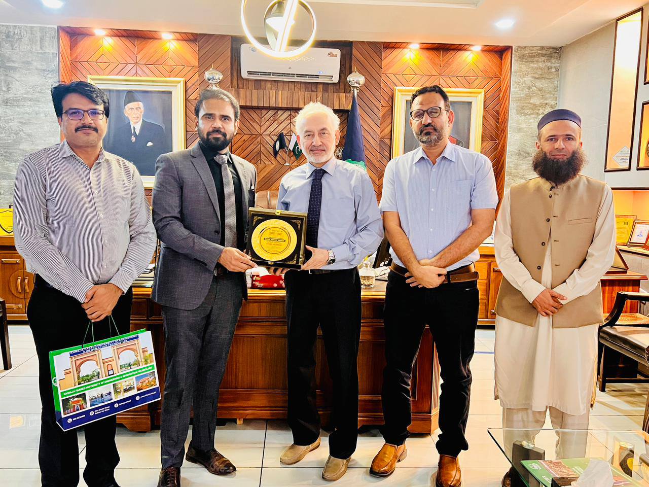 Following the meeting, Engr. Abrar Ahmed toured key facilities at KFUEIT, including the Pak-German Center for Innovation & Entrepreneurship, the High-Tech Lab, the High Voltage Lab, and the Eddy Covariance Tower installed with assistance from IWMI. Engr. Ahmed expressed his profound appreciation for the concerted efforts of the KFUEIT faculty and the impressive targets they have achieved.