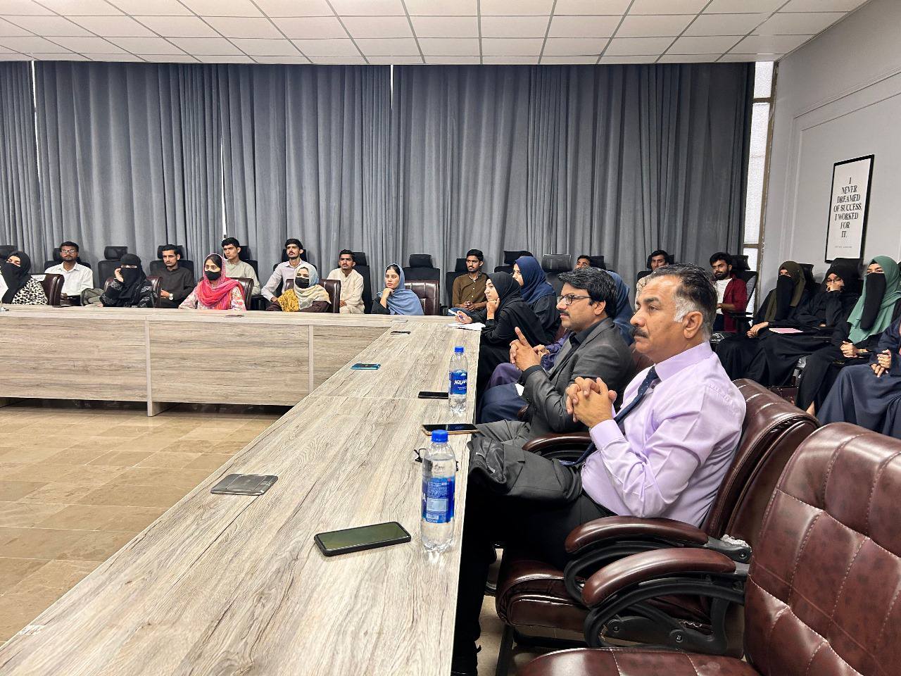The keynote speaker for the event was Engr. Dr. M. Saif Ur Rehman, Director ORIC, himself a distinguished Erasmus Mundus Alumni. Dr. Rehman addressed students from the 6th to 8th semesters, providing a comprehensive overview of the scholarship's immense importance, detailed structure, admission procedure, and necessary documentation.
