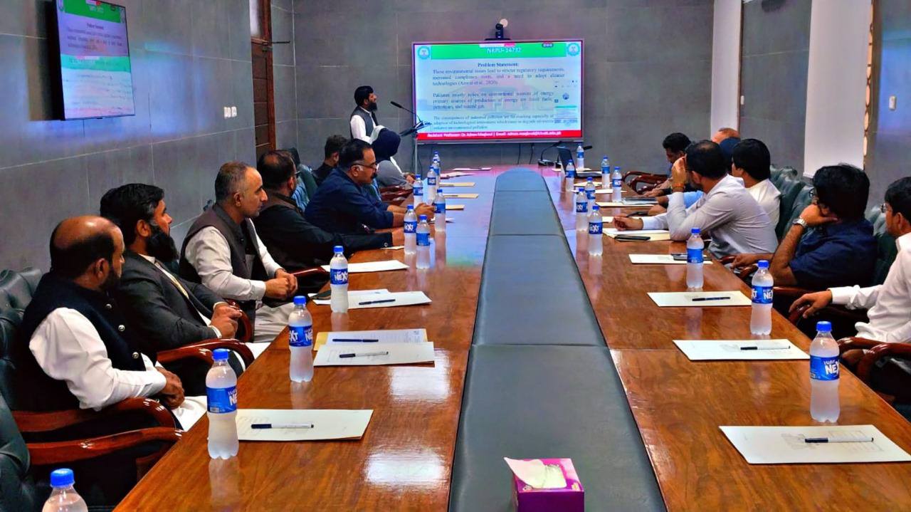 Dr. Adnan Maqbool, Principal Investigator (PI) of the project, presented his research findings to the participants. Dr. Maqbool highlighted the existence of various technologies capable of mitigating environmental pollution originating from industrial sources. He underscored the necessity of robust policy interventions to minimize the current pollution load, ultimately advocating for a mandatory shift of industrial technology towards green technology adoption across Pakistan.