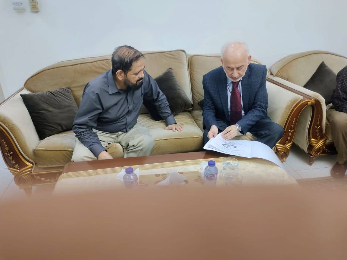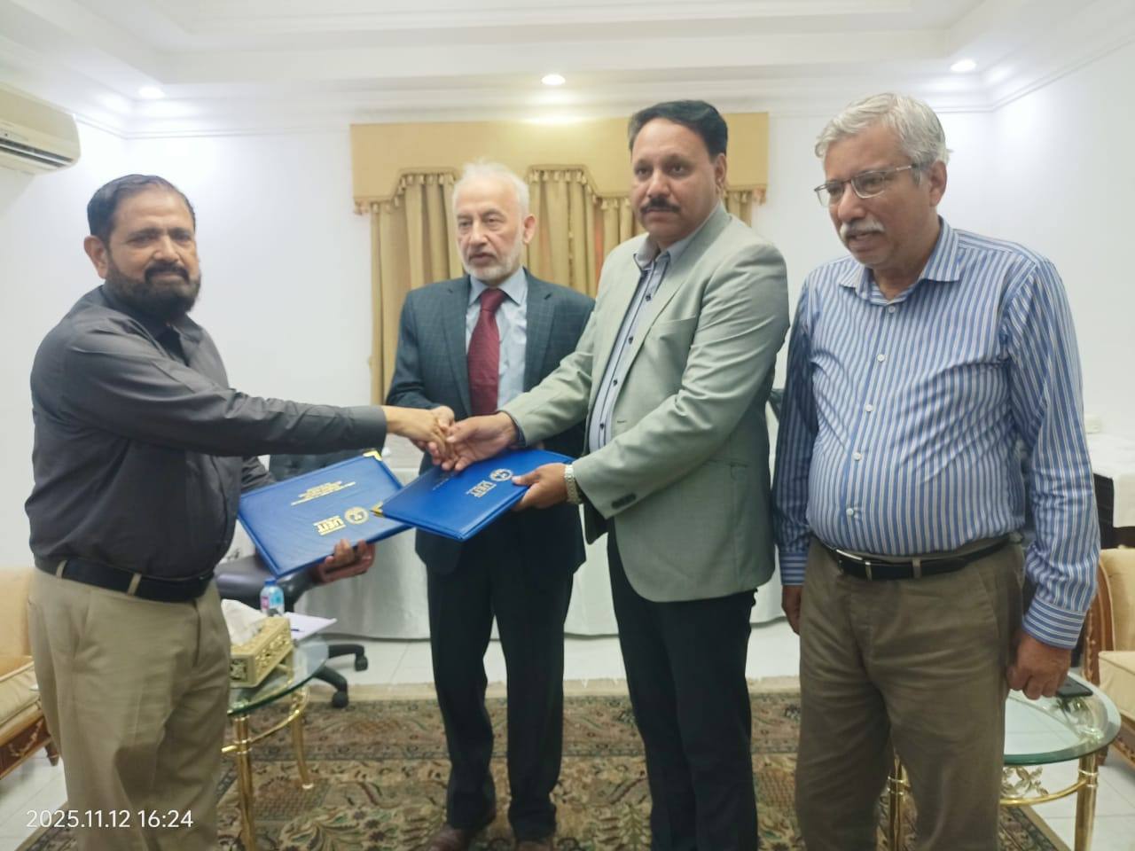 The ceremony was attended by Prof. Ir. Dr. Amir Azam Khan, Vice Chancellor KFUEIT; Prof. Dr. Muhammad Sagir, Dean / Director SPISD; Major (R) Irfan Mustafa, Manager All Regions, UAE Presidency’s Private Department and his team; Mr. Muhammad Abid Ali, Deputy Registrar KFUEIT, Mr. Muhammad Amjad, Superviser SPISD. The MoU was signed by Prof. Dr. Muhammad Sagir and Major (R) Irfan Mustafa.